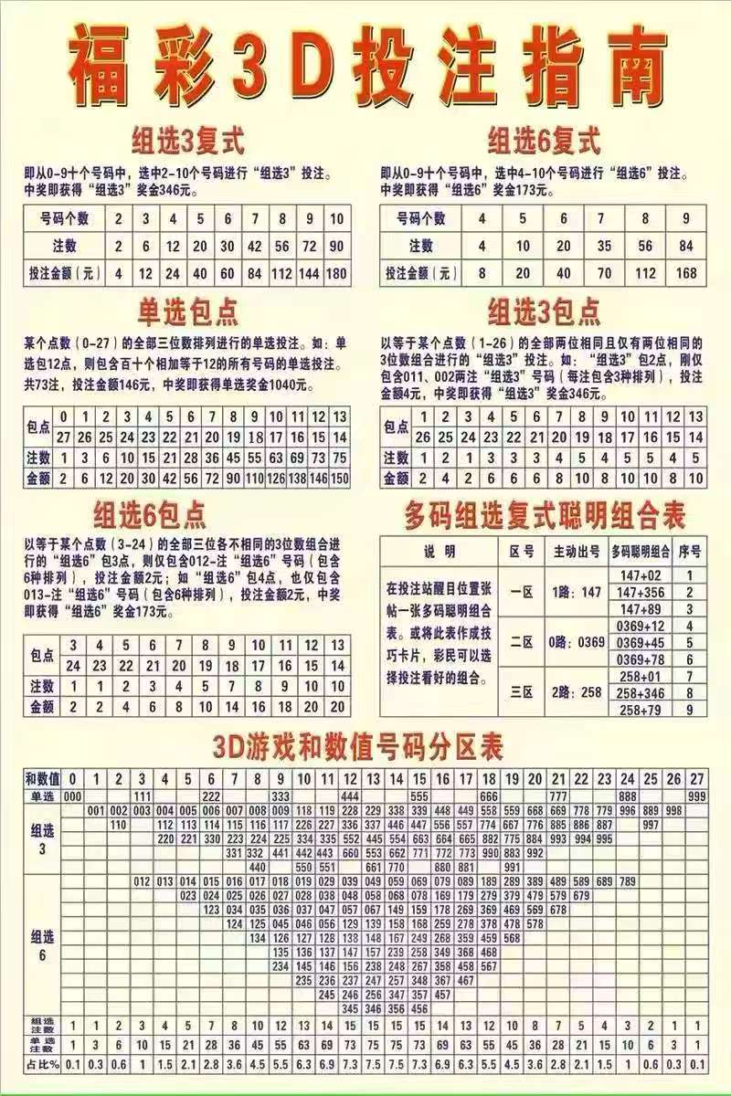 3D由台福彩中心发行和组织销售,由福彩销售机构在所辖区域内销售。 3D采用计算机网络系统发行,在福彩销售机构设置的销售网点销售,每天销售一期。 3D是指以三个号码排列或组合为一注进行单式投注,投注号码由0-9组成,三个位置从左至右分别为“百位”、“十位”、“个位”,一组三个号码的排列或组合称为一注。每注金额人民币2元。购买者可对其选定的投注号码进行多倍投注,投注倍数范围为2-99倍。单张彩票的投注金额最高不得超过20000元。